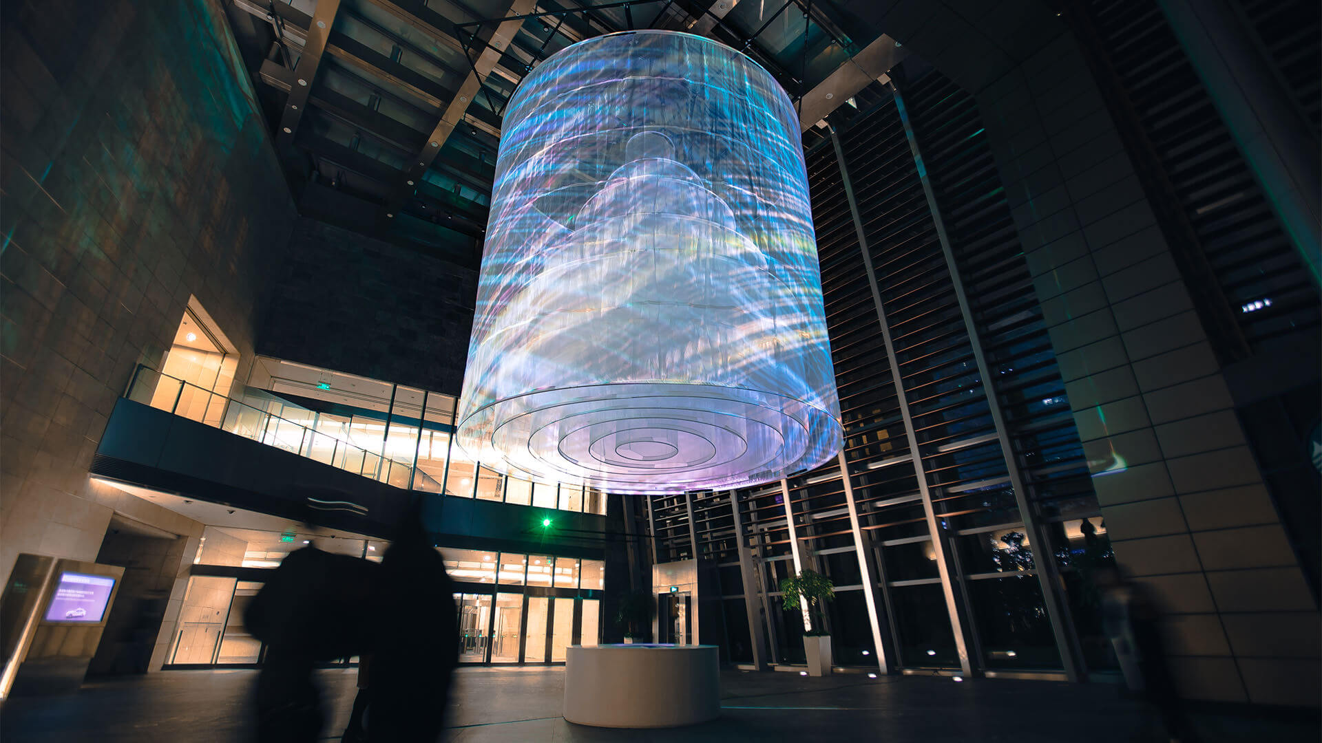 上海最大のペデストリアンデッキ「明珠環」を歩く人をトラッキングし、動きの速度・密度に合わせ色や太さ・速度の異なる光を生み出し続けるインスタレーション。トラッキングからopenFrameworksからプロジェクターまで全部一人でやりきった石川さんすごすぎた。プロジェクター詐欺にあったのもいい?思い出。